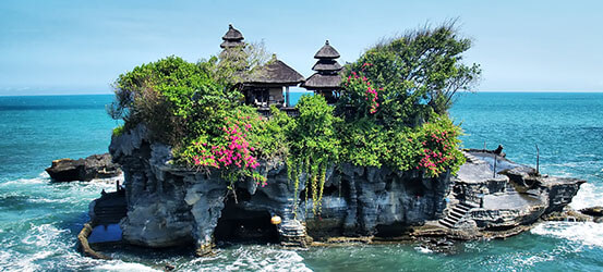 Make the de rigueur pilgrimage to sacred Pura Tanah Lot, one of Bali’s biggest tourist magnets. Perched high on a craggy wave-lashed rock, this ancient sea temple is best savoured at sunset, however there are less crowds early morning; make sure you receive a blessing from the Hindu Priests.